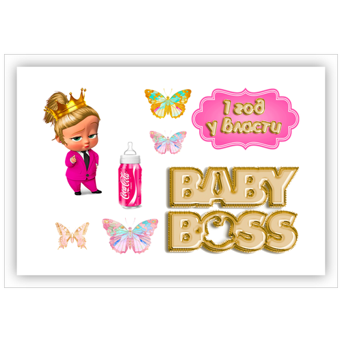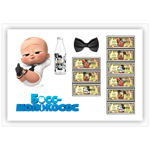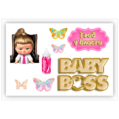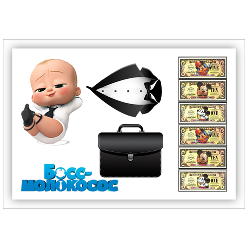Вафельная толстая картинка для торта. Съедобная, пищевая картинка. Украшение для торта и декор для выпечки. Размер А5. "(Босс-молокосос)"