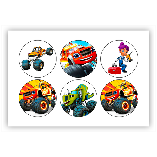 Вафельная толстая картинка для торта. Съедобная, пищевая картинка. Украшение для торта и декор для выпечки. Размер А5. "(Вспыш и чудо-машинки)"