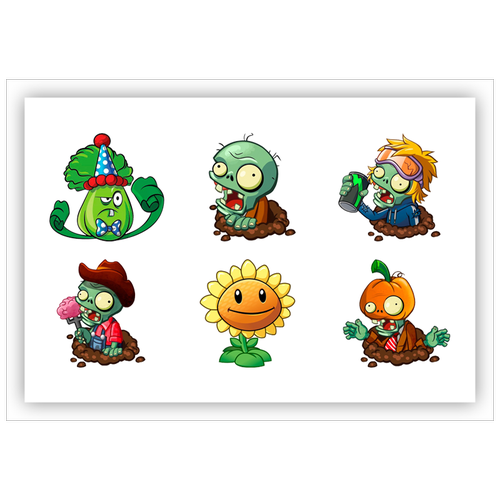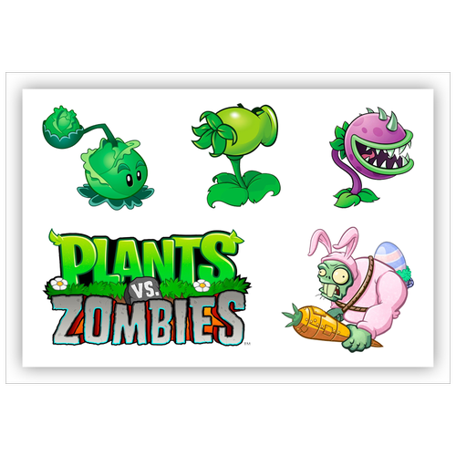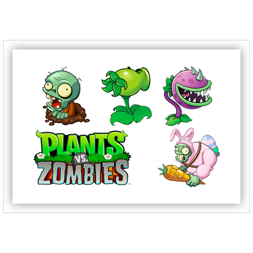 Вафельная толстая картинка для торта. Съедобная, пищевая картинка. Украшение для торта и декор для выпечки. Размер А5. "(Растения против зомби)"