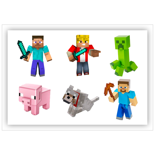 Вафельная толстая картинка для торта. Съедобная, пищевая картинка. Украшение для торта и декор для выпечки. Размер А5. "Minecraft (Майнкрафт)"