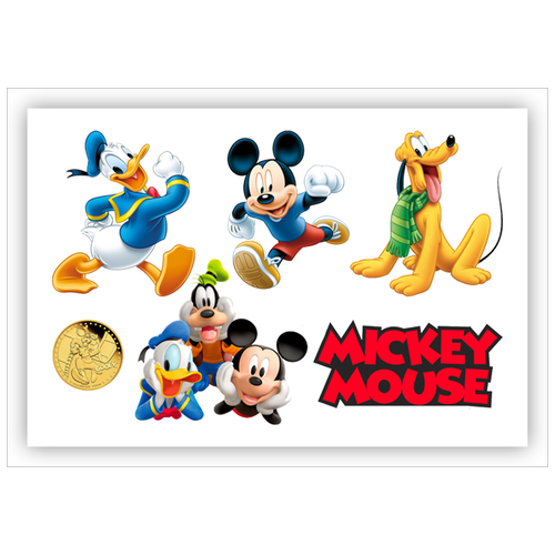Вафельная толстая картинка для торта. Съедобная, пищевая картинка. Украшение для торта и декор для выпечки. Размер А5. "Mickey Mouse (Мики Маус)"