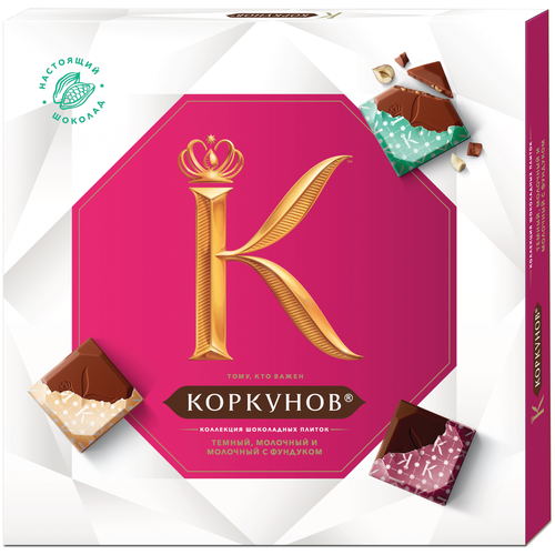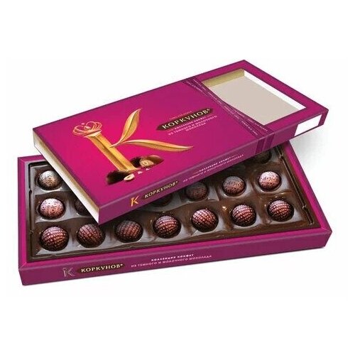 Набор шоколадных конфет коркунов из темного и молочного шоколада с цельным и дробленым фундуком 109 г