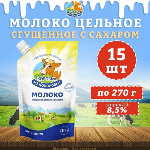 Молоко цельное сгущенное с сахаром 8,5%, дойпак, КизК, 15 шт. по 270 г