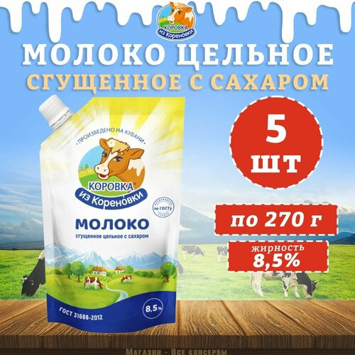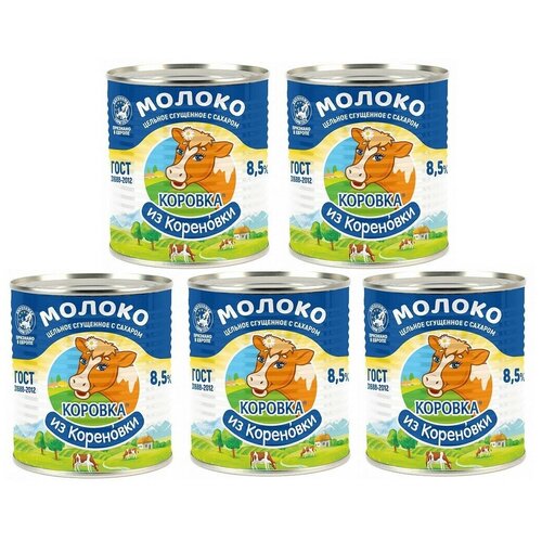 Молоко цельное сгущеное 8,5% Коровка из Кореновки (кмкк) (бзмж) 380г х 5 шт