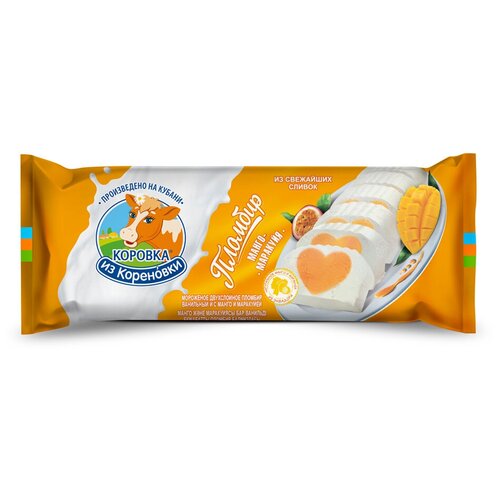 Мороженое Коровка из Кореновки Пломбир двухслойный ванильный манго-маракуйя 400г (2 упаковки, 16 шт)