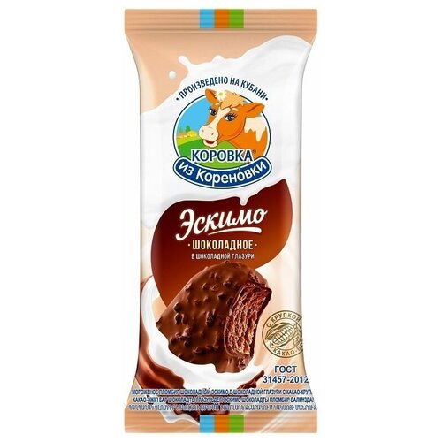 Мороженое Коровка из Кореновки Эскимо шоколадное в шоколадной глазури с какао-крупкой, 70г (2 упаковки, 40 шт)