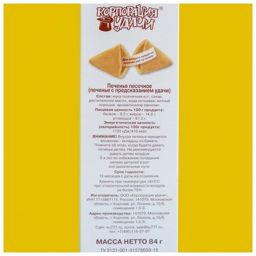 Печенье с предсказанием удачи "Стандартное", 84 г, Корпорация Удачи