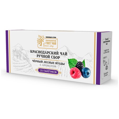 Краснодарский чай Ручной сбор чай черный пакетированный 25пак*2гр 50гр Лесные ягоды