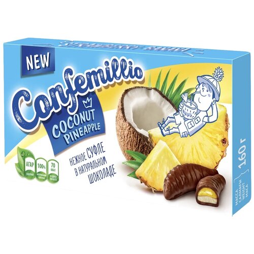 Конфеты красный пищевик Confemillio со вкусом кокоса и ананаса коробка 160 г