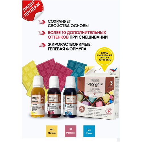 Набор пищевых красителей CHOCOLATE креда (KREDA) 3 цвета Oil-gel (плюс карта смешивания цветов), жирорастворимые гелевые, 3шт*20мл