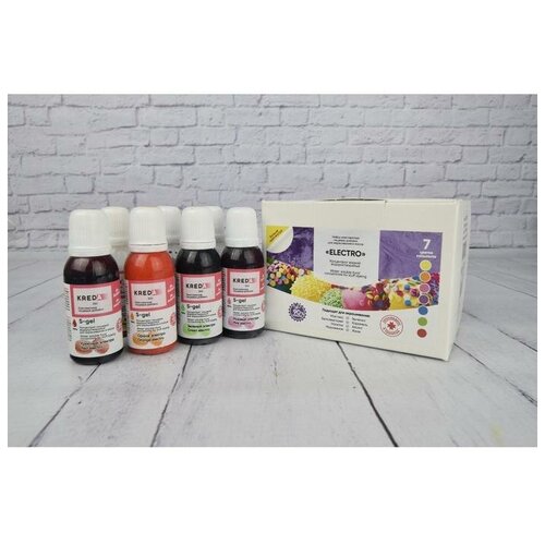 Набор пищевых красителей ELECTRO креда (KREDA) 7 цветов S-gel, концентраты гелевые, 7шт* 20мл