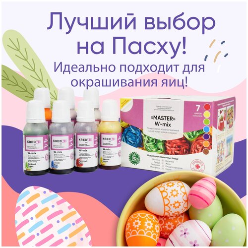 Набор пищевых красителей MASTER креда (KREDA) 7 цветов W-mix, 7шт*20мл