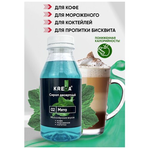 Сироп десертный низкокалорийный 02 мята (430 г) KREDA для кофе, коктейлей, напитков, мороженого