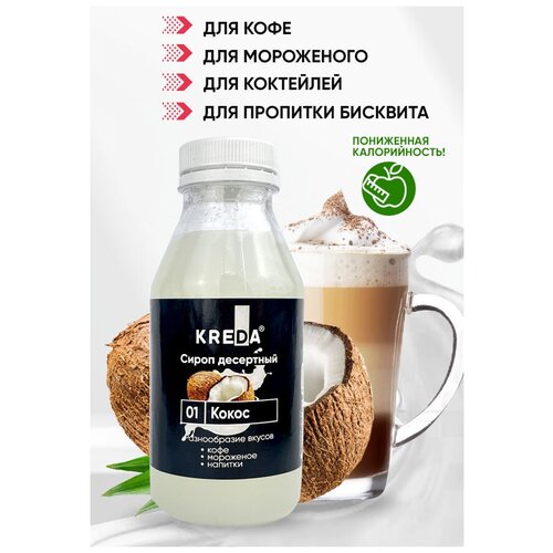 Сироп десертный низкокалорийный 01 кокос (430 г) KREDA для кофе, коктейлей, напитков, мороженого
