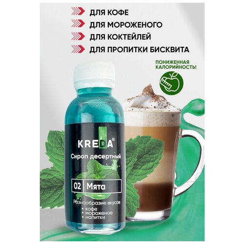 Сироп десертный низкокалорийный 02 мята (150 г) KREDA для кофе, коктейлей, напитков, мороженого