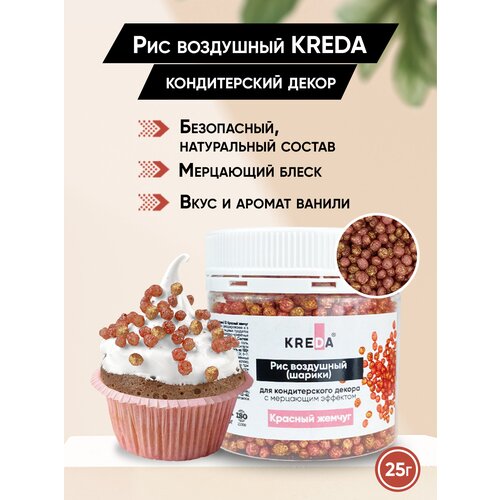 Посыпка кондитерская Рис воздушный Kreda 02 красный жемчуг 25г