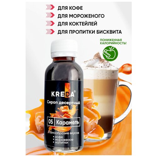 Сироп десертный низкокалорийный 05 карамель (150 г) KREDA для кофе, коктейлей, напитков, мороженого