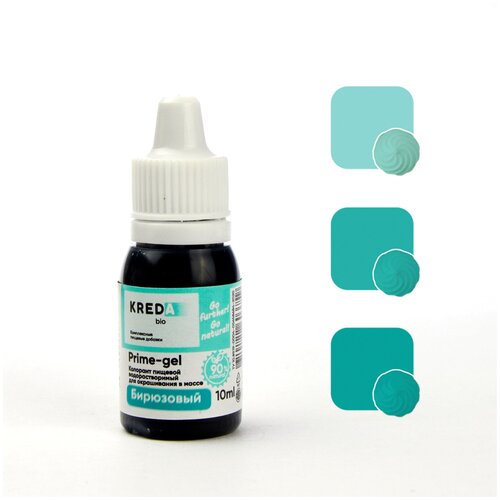 Краситель гелевый пищевой водорастворимый Prime-gel KREDA бирюзовый №15, 10 мл