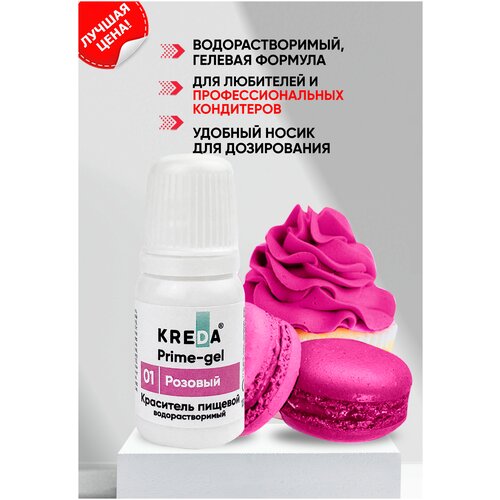 Краситель гелевый пищевой водорастворимый Prime-gel KREDA розовый №01, 10 мл