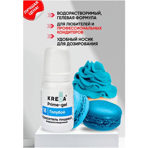 Краситель гелевый пищевой водорастворимый Prime-gel KREDA голубой №18, 10 мл
