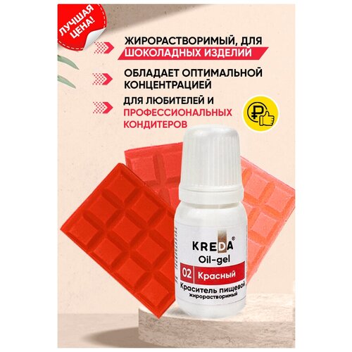 Краситель гелевый пищевой жирорастворимый Oil-gel KREDA красный №02, 10 мл