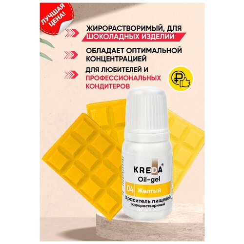 Краситель гелевый пищевой жирорастворимый Oil-gel KREDA желтый №04, 10 мл