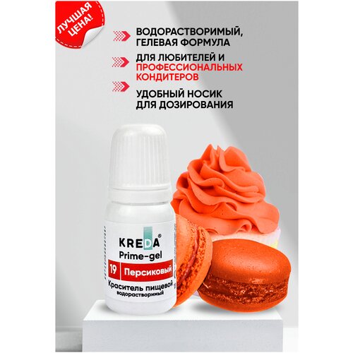 Краситель гелевый пищевой водорастворимый Prime-gel KREDA персиковый №19, 10 мл