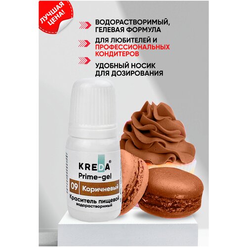 Краситель гелевый пищевой водорастворимый Prime-gel KREDA коричневый №09, 10 мл