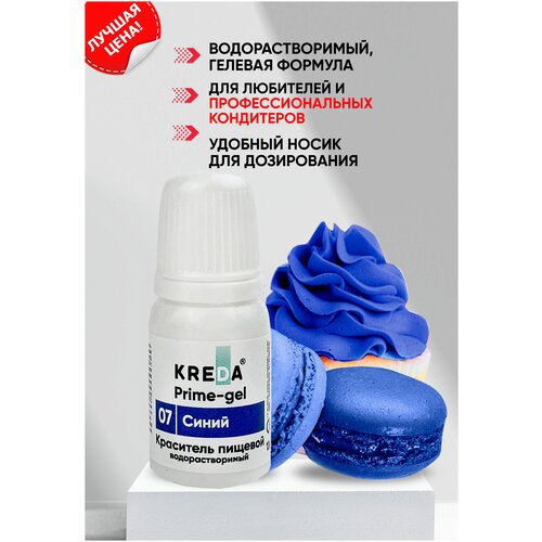 Краситель гелевый пищевой водорастворимый Prime-gel KREDA синий №07, 10 мл