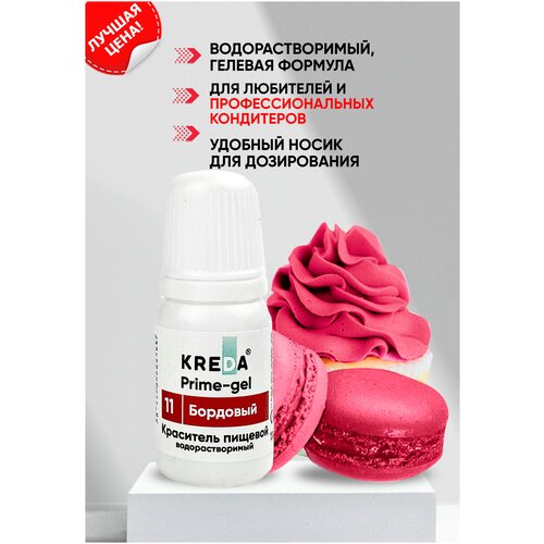Краситель гелевый пищевой водорастворимый Prime-gel KREDA бордовый №11, 10 мл