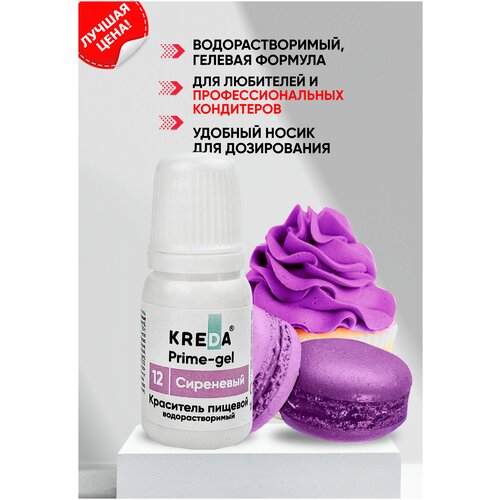 Краситель гелевый пищевой водорастворимый Prime-gel KREDA сиреневый №12, 10 мл