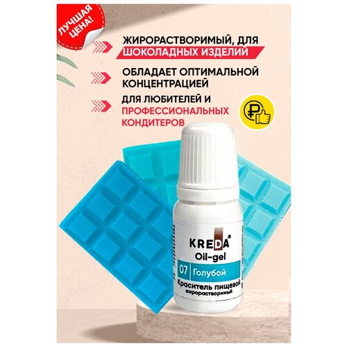 Краситель гелевый пищевой жирорастворимый Oil-gel KREDA голубой №07, 10 мл