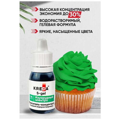 Краситель пищевой концентрат гелевый Kreda S-gel изумрудный электро №71, 10 мл