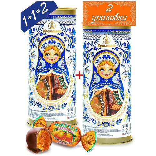 Конфеты "Курага Кремлина шоколадная" "Матрешка.Гжель" туба 250 г — 2шт