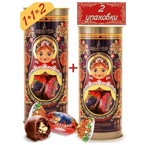 Конфеты "Чернослив Кремлина шоколадный с грецким орехом" "Матрешка.Хохлома" туба 250 г — 2шт