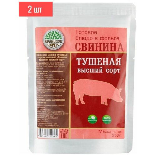 Консервы мясные кусковые стерилизованные. "Свинина тушеная высший сорт" 250гр (Кронидов) 2шт