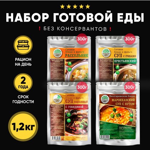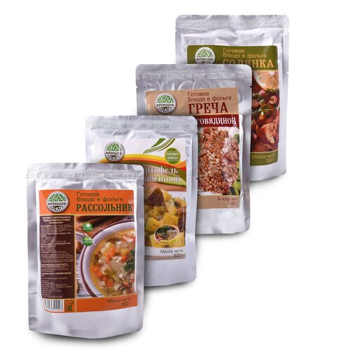 Набор из 4 готовых блюд в реторт-пакете "Кронидов" Рассольник/Суп с грибами Крестьянский/Суп фасолевый с говядиной/Суп Марокканский