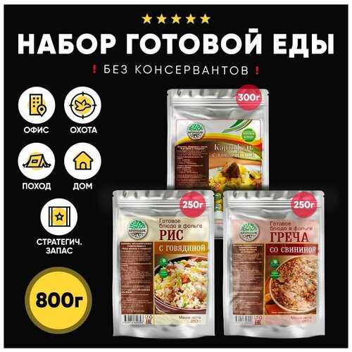 Набор из 3 готовых блюд в реторт-пакете "Кронидов" Картофель с говядиной/Рис с говядиной/Греча со свининой