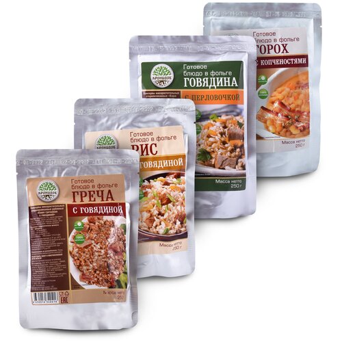 Набор Каши с мясом 4шт: Перловка с говядиной, Горох, Греча с говядиной, Рис с говядиной (Кронидов)