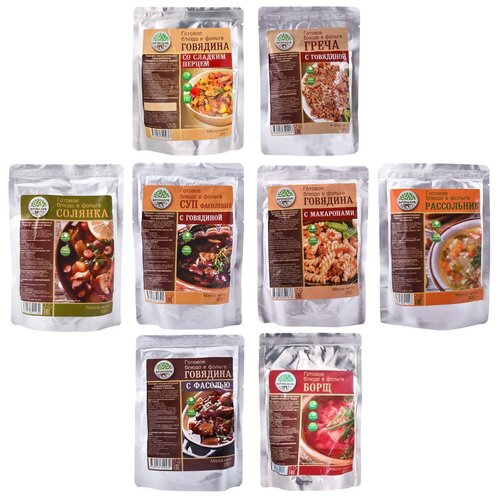 Набор 8шт, Готовый обед на 4 дня: Борщ,Солян,Рассол,Фасол-ГовГреч,Макар,Перц,Фас(Кронидов)