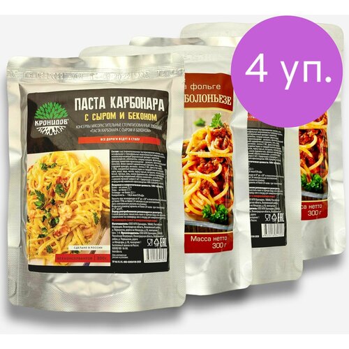 Паста "Болоньезе" и Паста "Карбонара" 4*300г. "Кронидов" Готовое блюдо в фольге