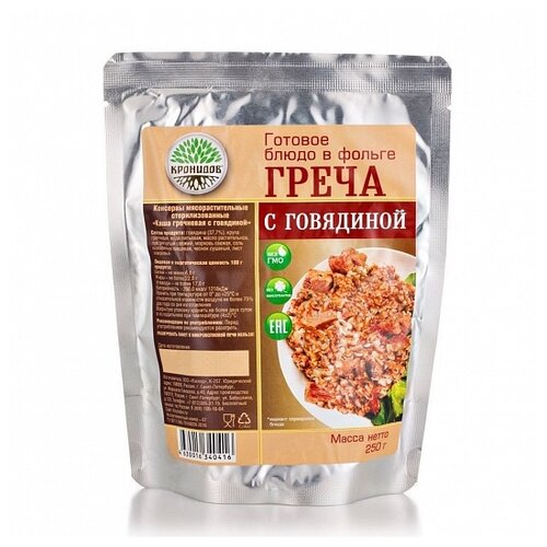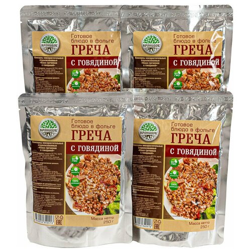 Готовое блюдо "Каша гречневая с говядиной" 250 г. (Кронидов) 4шт*250гр, 1кг