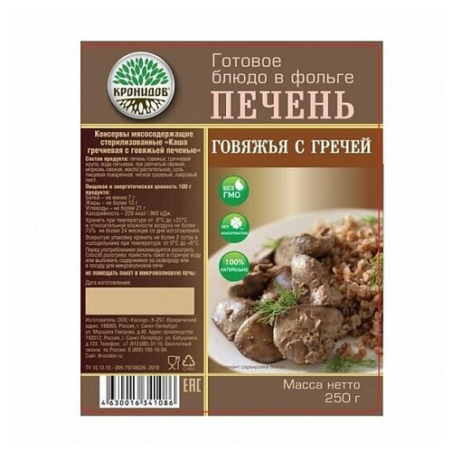 Готовое блюдо "Каша гречневая с говяжьей печенью" 250 г. (Кронидов) 4шт 1кг