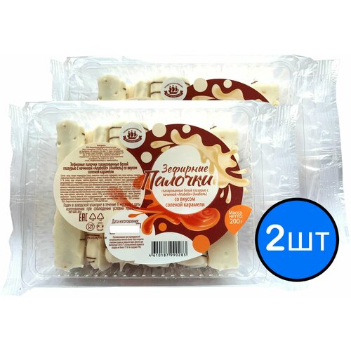 Зефирные палочки глазированные белой глазурью с начинкой соленая карамель КФ кронштадтская, 200г х 2шт