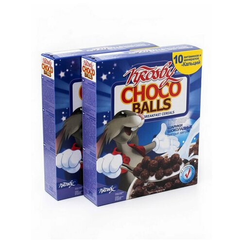 Завтраки готовые, Шарики шоколадные 200г, 2уп., KROSBY