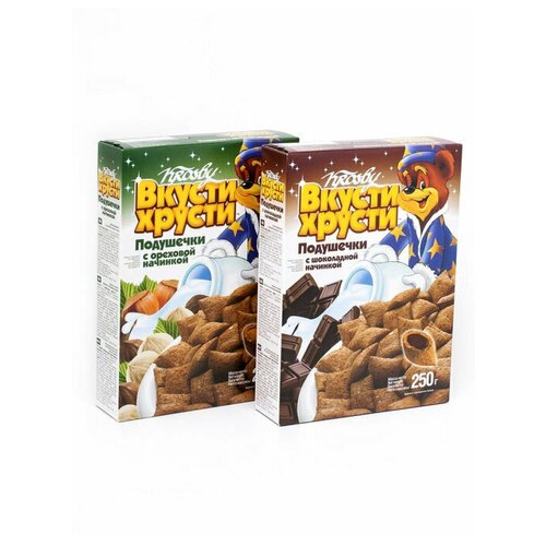 Подушечки 250г. 2 уп., KROSBY, шоколадная и сливочная начинка