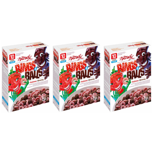 Готовый завтрак Krosby Rings&Balls со вкусом Клубники и Шоколада, 250 г 2 пачки