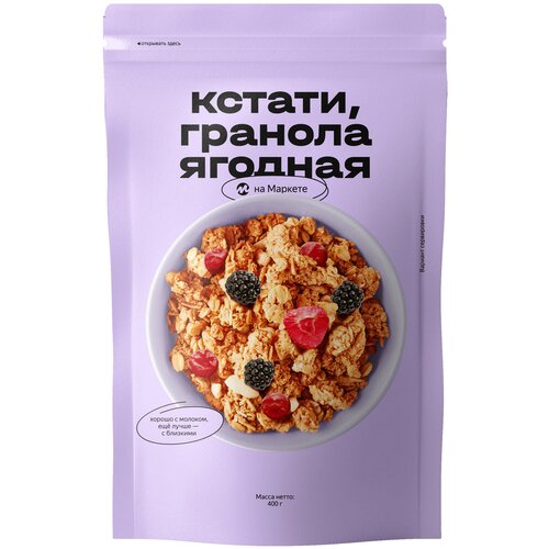Гранола Яндекс Маркет Кстати Ягодная, 400 гр дой-пак