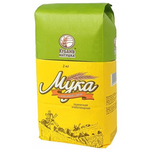 Мука пшеничная высший сорт хлебопекарная ГОСТ "Кубань Матушка" 2 кг, 2 пачки