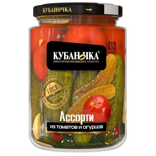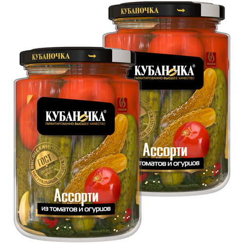 Кубаночка / Ассорти огурцы помидоры (томаты) маринованные консервированные 720г х 2 штуки